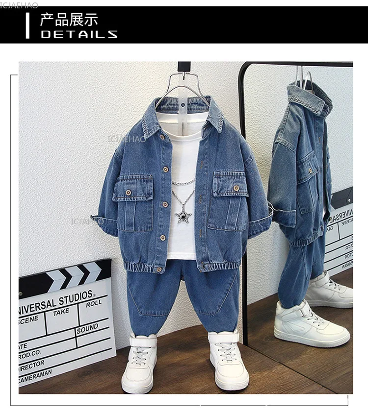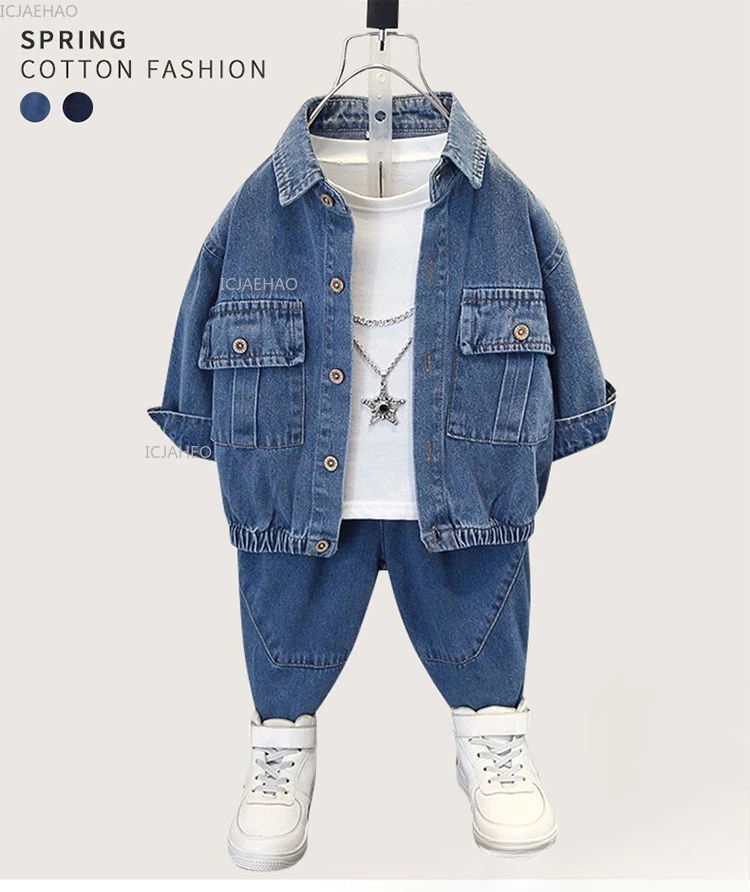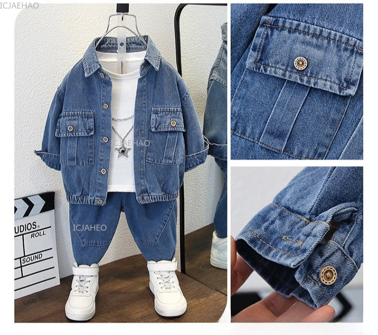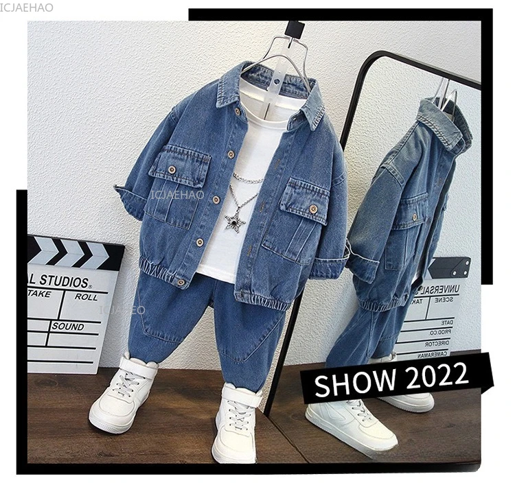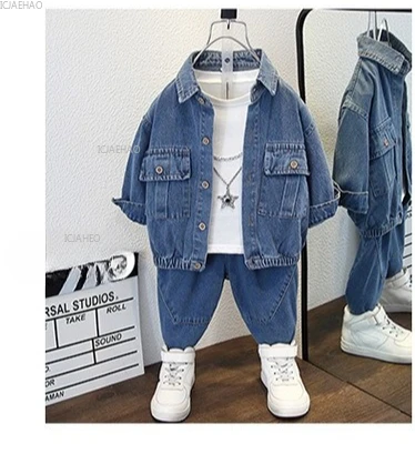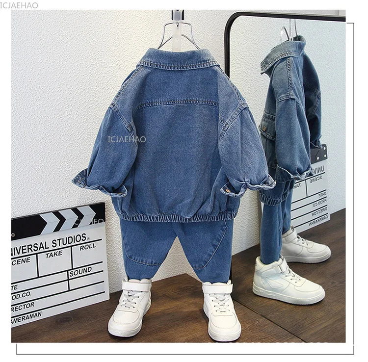 Boys Denim Set 2 Piece Clothes Kids Trendy Cotton Jacket Pants Suits Outfit Casual Wear Children Clothing Spring Autumn Costume