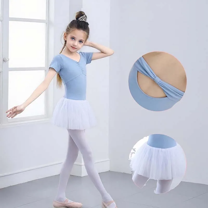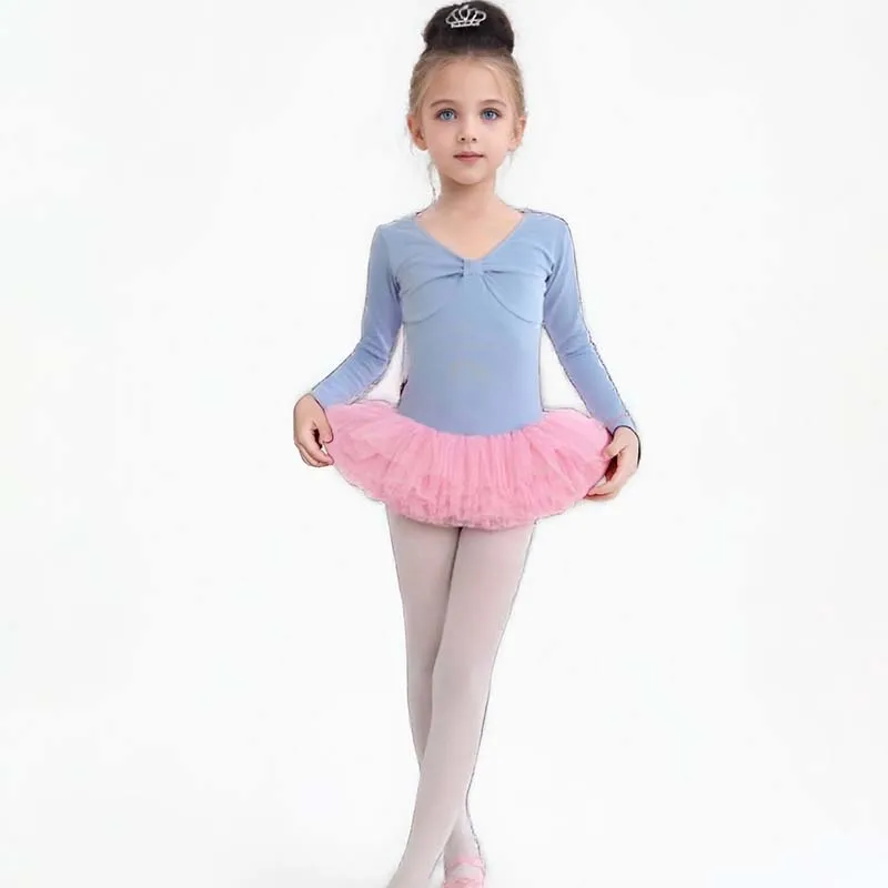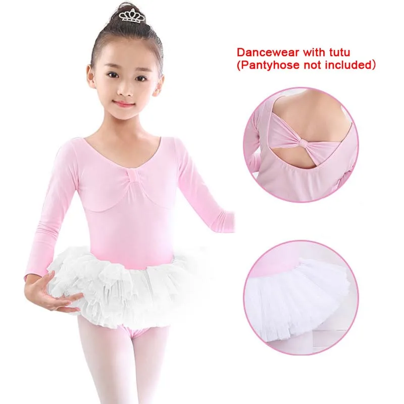 Kids Cotton Ballet Dance Dress Cute Tutu Skirted Leotard for Toddler Girls Long Sleeve Hollow Back Ballet Leotard Dancewear